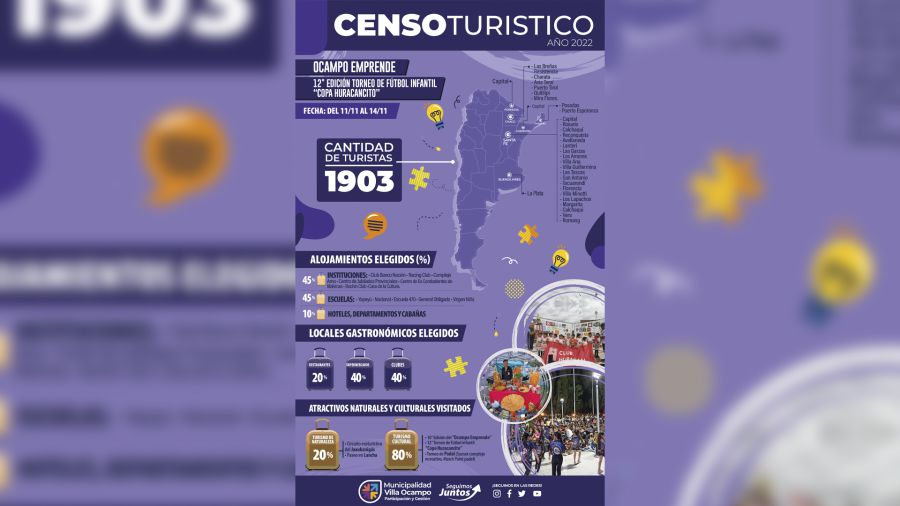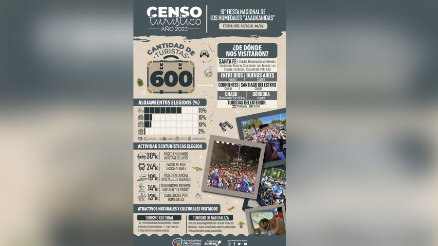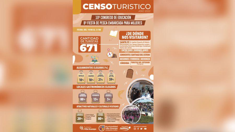 La Secretaría de Sistemas Productivos y Medio Ambiente de la Municipalidad de Villa Ocampo informa que desde la Dirección de Turismo se hizo un relevamiento de donde surge el perfil del turista que visita Villa Ocampo en el tiempo transcurrido de post pandemia, obteniéndose los siguientes datos: